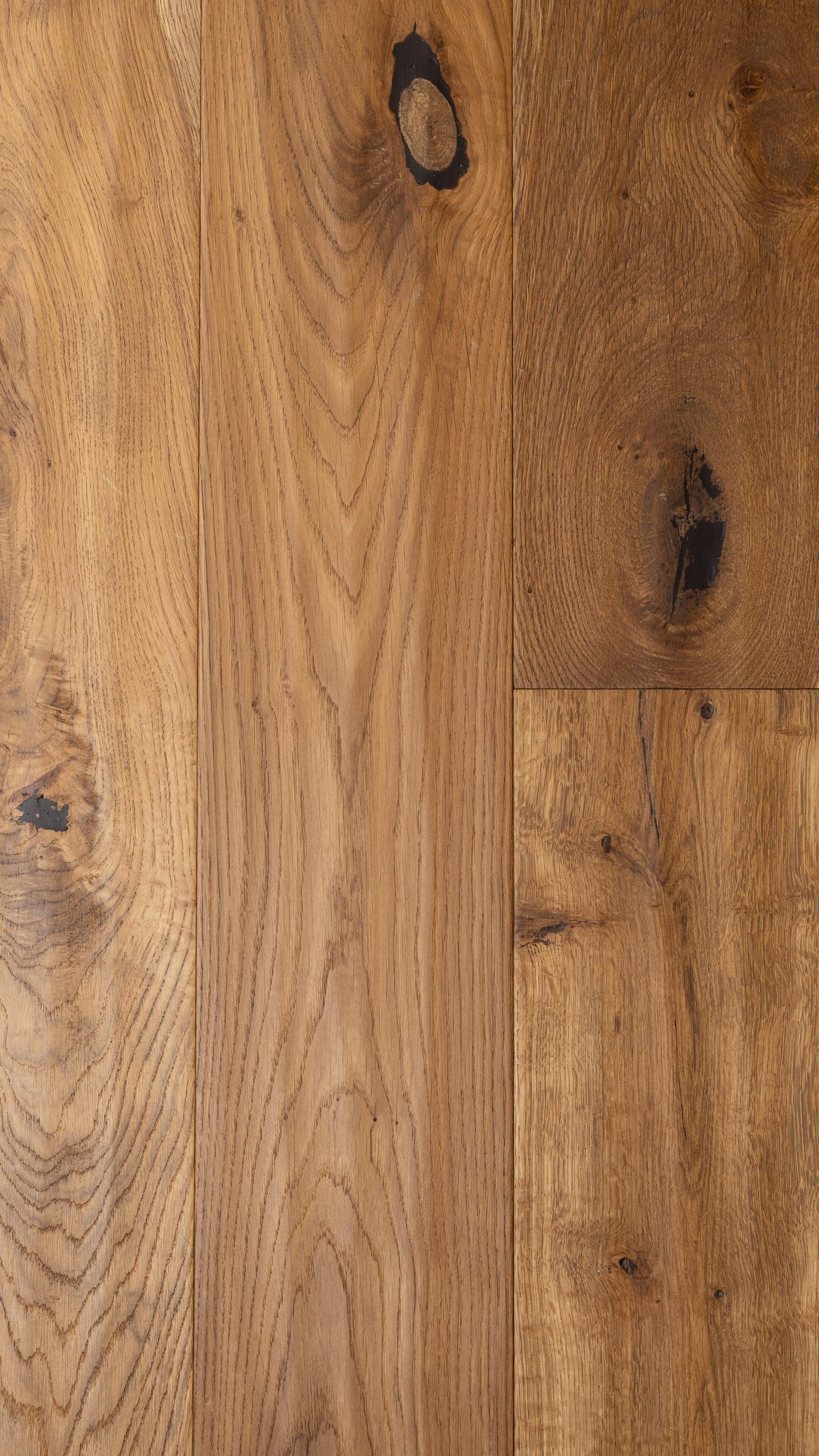 Ce chêne rustique se distingue par un travail de finition profond : fumé, brossé et raboté, il offre une surface texturée qui semble avoir traversé le temps.