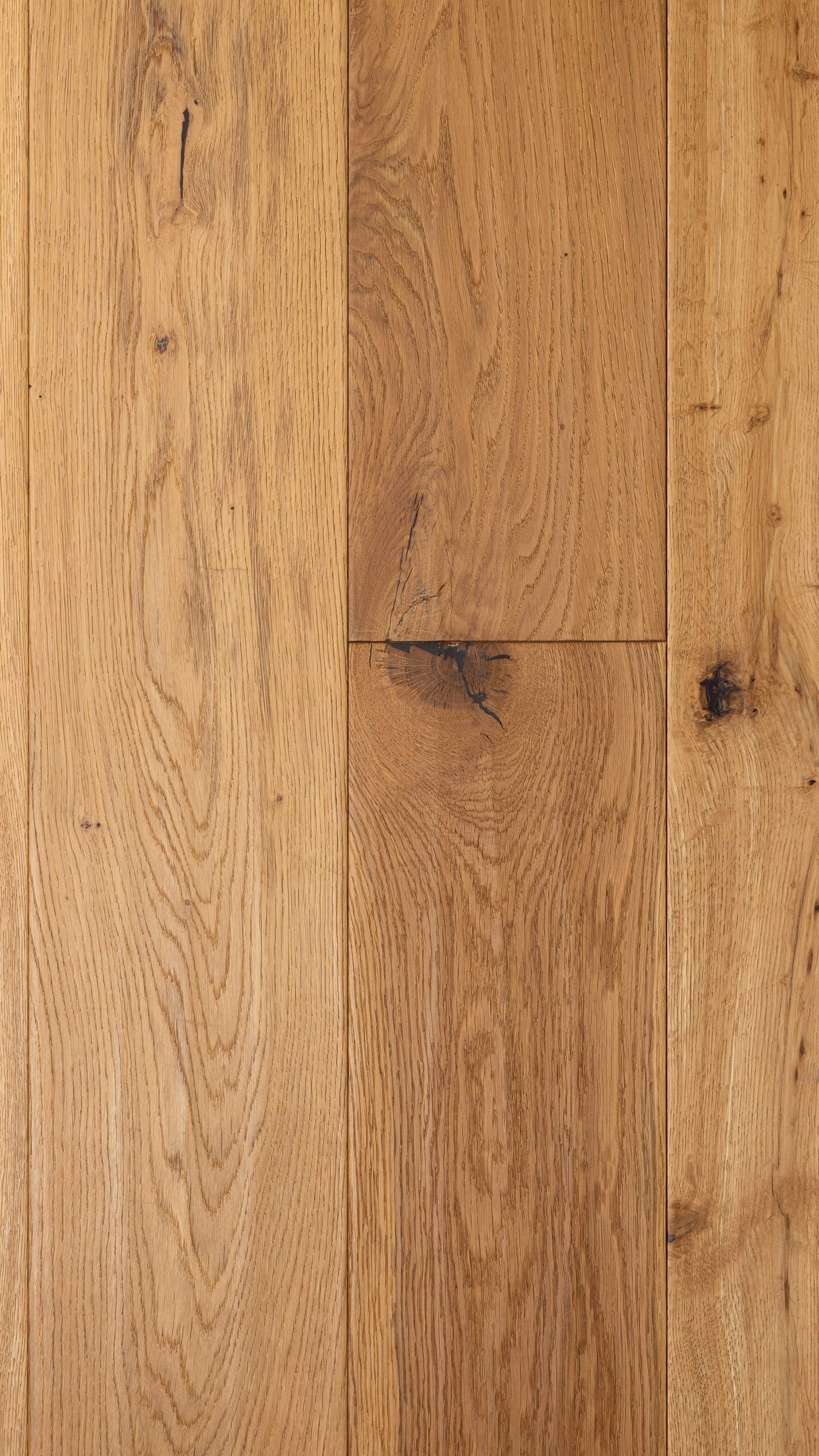 Ce chêne rustique bénéficie d’un travail de finition complet : vieilli, brossé et raboté, il offre un relief unique sous le pied et un cachet historique immédiat.